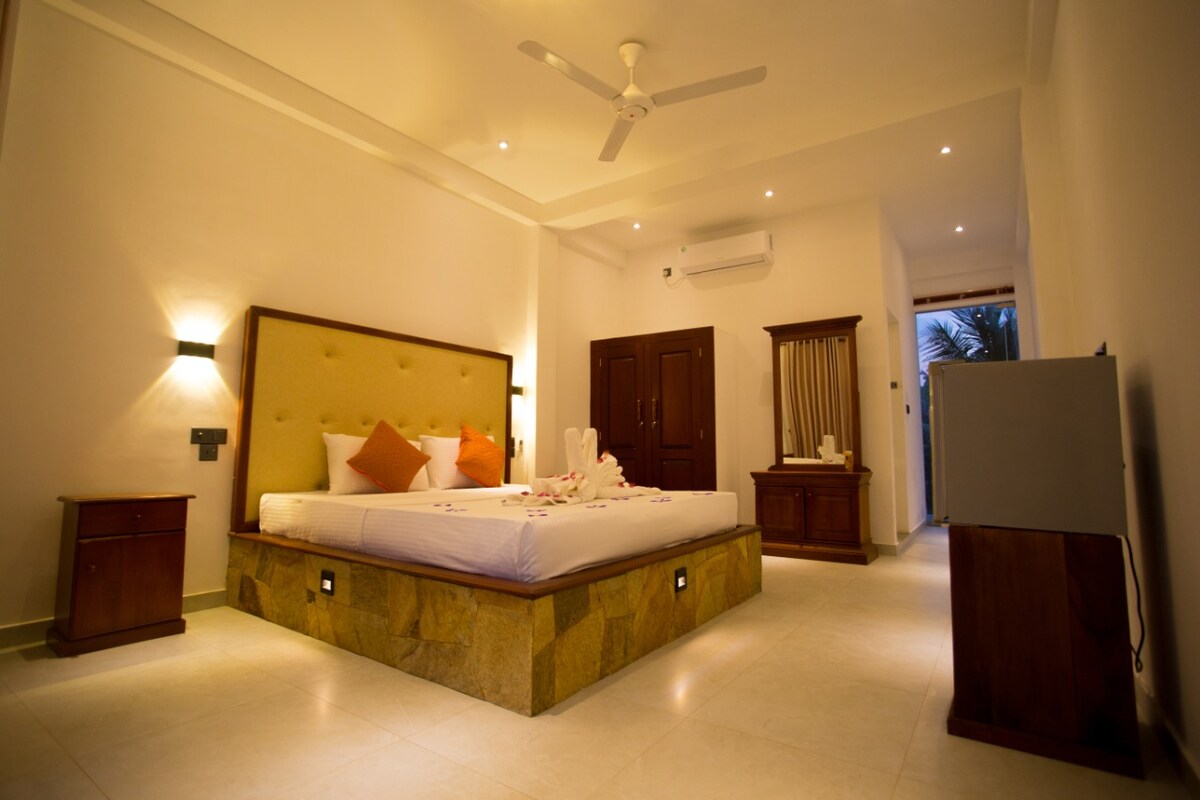 Stay in the heart of Unawatuna, Galle! Our stylish A/C double room offers comfort, convenience, and a relaxing stay. We have 17 well-maintained rooms; your room (ground, 1st, or 2nd floor) is assigned based on availability—notify us early for ground-floor requests. Perfect for couples, solo travelers or families. Nearby: 0.5 km Unawatuna Beach 1.8 km Dalawella/Turtle Beach 2.2 km Dewata Surf Beach 2.3 km Jungle Beach 4.9Km Talpe Rock Pool Beach 5 km Galle Fort 7 km Sea Turtle Farm