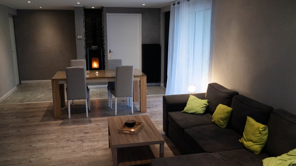 Tahimik sa bayan, sa isang bahay ang mga benepisyo ng "Pugad ng mga bituin" isang independiyenteng pasukan para sa mga bisita at berdeng espasyo, na may mga tanawin ng may bituin na kalangitan, sa gabi. Para sa isang kaaya - ayang pamamalagi, nilagyan ito ng bawat kaginhawaan. Ayos: - para sa iyong pamamalagi sa pagtuklas - para bisitahin ang iyong pamilya o mga kaibigan na Bisontins - para sa iyong propesyonal na pamamalagi sa sports, o akademikong siyentipiko. Puwede kang mag - check in nang naglalakad mula sa istasyon. Kung mayroon kang kotse: libreng pampublikong paradahan.