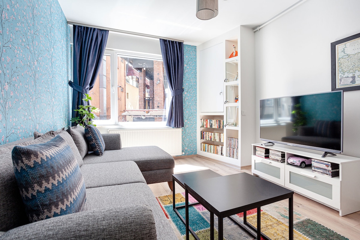 Art nouveau style decorated 50 square meters 1+1 flat in Beşiktaş very close to metro station. The flat is on the 3rd floor of a residential small size building and is well equipped for every kind of needs. The house can accomodate up to 3 guests as the sofa in the living room is a pull out couch. Bedroom is located in the backside of the house and is very quiet with amazing city view. You will have fast internet (100 Mbps) and international TV channels including netflix and amazon prime video.