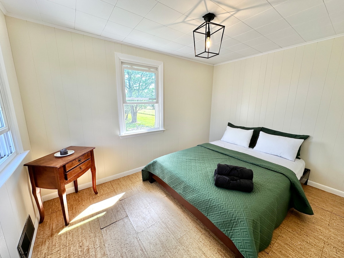 Pumasok sa kasaysayan sa loob ng aming bagong ayos na 1800s na bahay sa bahay ng paaralan. Mamahinga at gawin itong madali sa malawak na front porch, na may mga nakamamanghang tanawin ng rural na bukiran at makasaysayang sementeryo sa tabi ng pinto. Umupo sa tabi ng apoy at mag - enjoy sa isang libro o inumin kasama ng mga kaibigan at pamilya at magluto ng masarap na pagkain sa farmhouse. Hindi mabibigo ang natatangi at tahimik na bakasyunan na ito. At 4 na minuto lang ito mula sa Main Street ng Narrowsburg. Isang bato lang ang layo ng mga butas at hiking trail sa kahabaan ng Delaware River.