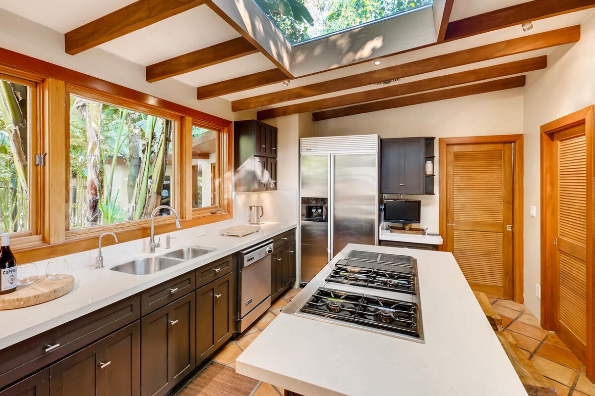 Ang kagandahan ng luxury designer furniture, Cali Sun drenched Italian Calacatta shower w/walang katapusang mainit na tubig at 2 shower head Magagandang linen, walkway lighting kahit saan 4 na kaligtasan. Electronic dimmers, Ac/init w/ remote, Skylights mahusay na kutson. Kumpletong Kusina, Smart refrigerator, Keurig,- higanteng aparador, mahusay na kutson. Magkaroon ng karanasan sa designer sa loob at labas. Walang detalye na hindi nagagalaw. Maligayang pagdating sa LA sa walang aberyang WiFi - 2 - 50" Samsung smart TV Maghintay hanggang makita mo ang sahig! Sanay madismaya ka!