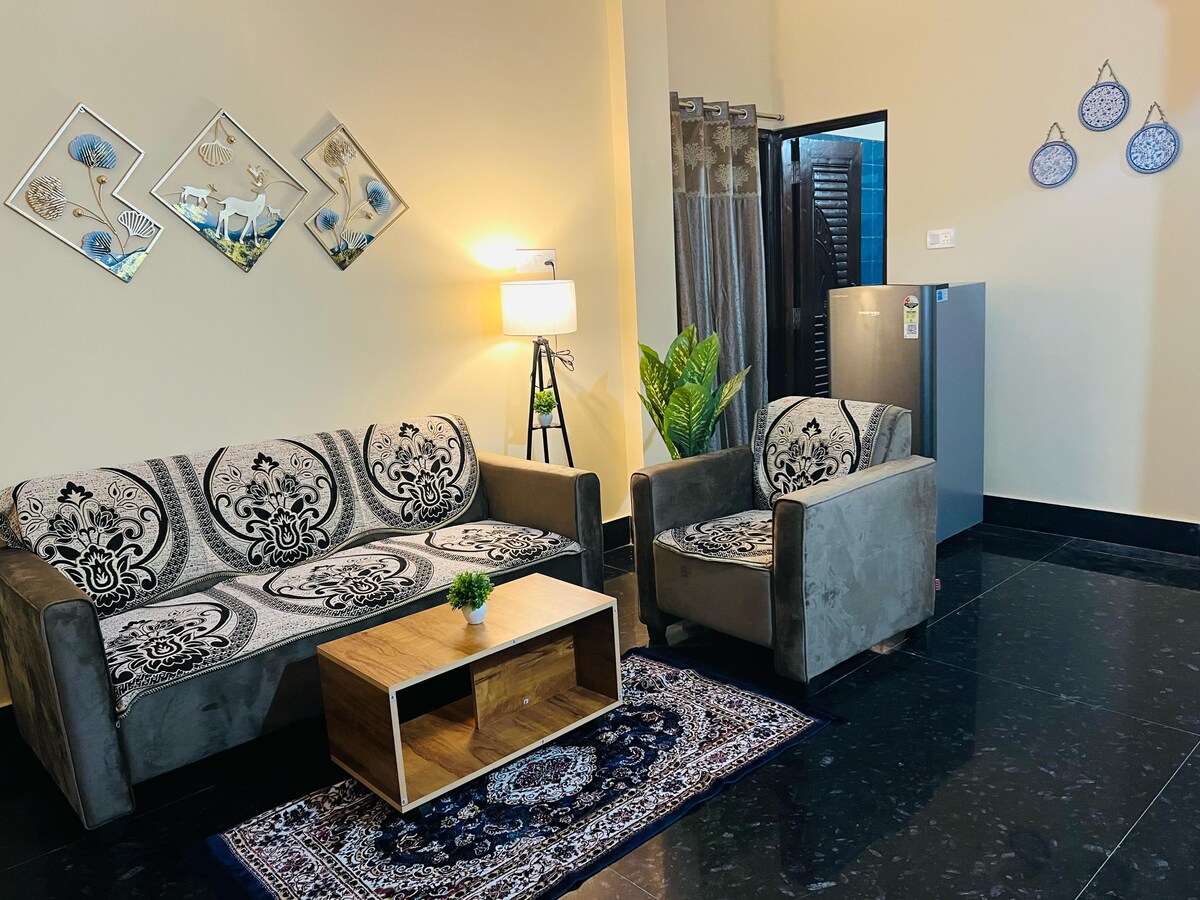 Isang fully furnished at komportableng pribadong studio 1 bhk na mayroon ng lahat ng amenidad ng isang tuluyan, na para na ring isang tahanan. Kusina ay mahusay na nilagyan ng isang water purifier, induction cooker at isang microwave na may awtomatikong tsimenea, isang Geyser para sa mainit na tubig at isang 1.5 tonelada air conditioner na may isang mababang antas ng kama para sa isang mapayapang pagtulog sa gabi. Ang bulwagan ay may Diwan bed cum Sofa at 44 inch smart TV para sa entertainment na may 100 Mbps Wifi para sa iyong trabaho mula sa mga pangangailangan sa bahay. Kalimutan ang iyong mga alalahanin sa maluwag at tahimik na lugar na ito.