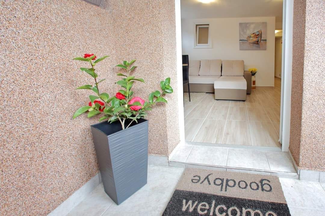 Opustite se u dvosobnom apartmanu sa 2 bračna kreveta plus pomoćni ležaj,kao i mogućnost korištenja putnog kreveta za bebu. Apartman se nalazi u mirnoj ulici bez puno prometa,okružen maslinama i borovom šumom. Nalazi se u obiteljskoj kući,ima svoj besplatan parking,tv,perilicu,klimu,wifi, veliko dvorište na kojem se ujedno nalazi i prostor za sjedenje,druženje kao i razne igre za djecu,također ima i mogućnost korištenja roštilja. Do plaže ima 5 min hoda,kao i do centra i restorana. Dobrodošli
