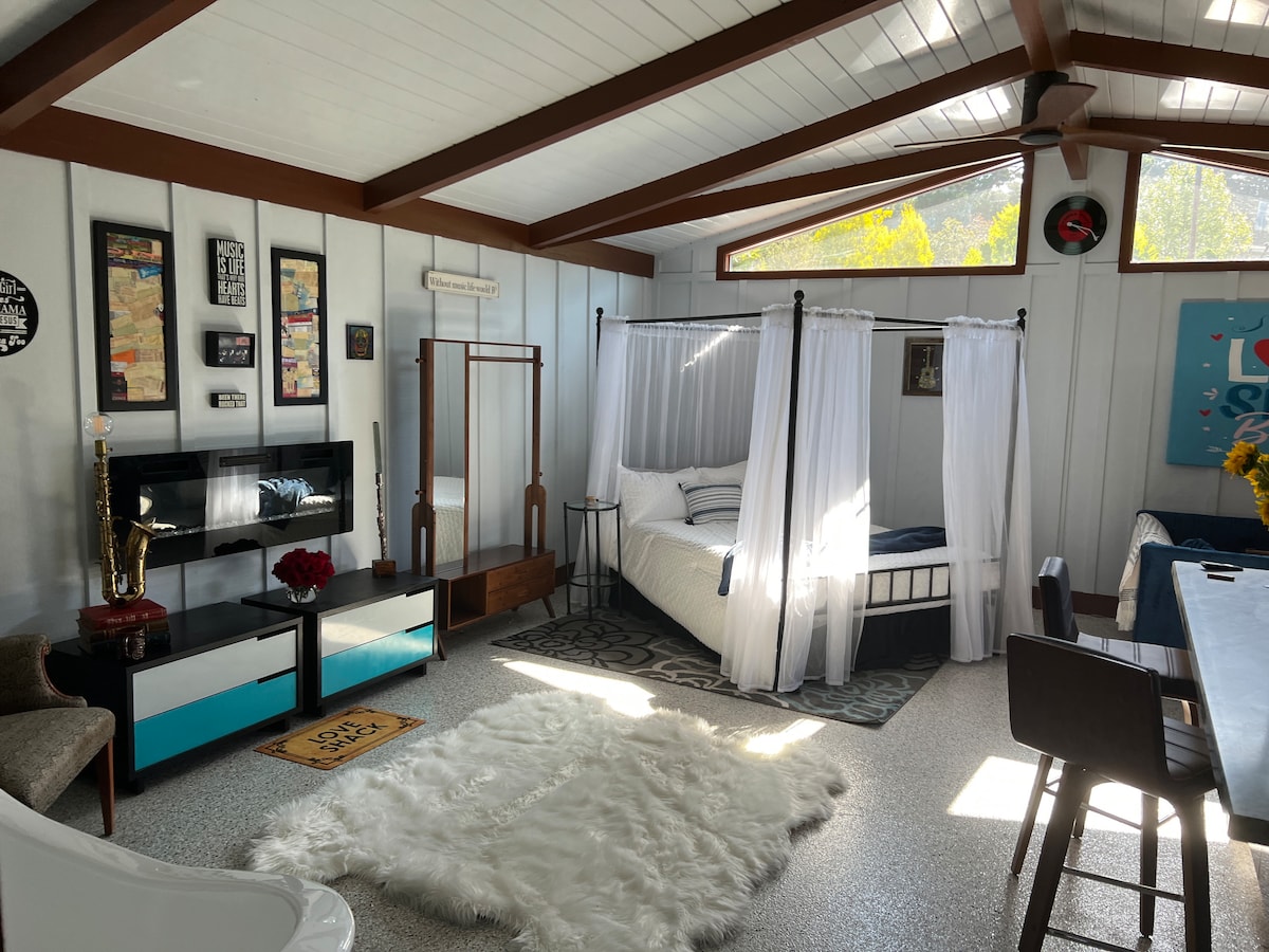 Naghahanap ka ba ng perpektong tahimik na bakasyunan para sa isa o dalawang tao? Matatagpuan ang Love Shack sa Highway 1 sa pagitan ng Big Sur at Carmel. Nagtatampok ang bagong inayos na studio bungalow na ito ng kumpletong kusina, soaking tub para sa dalawa, nakakarelaks na shower sa labas, 4 na postered queen bed at romantikong LED fireplace. Ibinabahagi ng tuluyang ito ang isang ektarya sa ibang tuluyan. Ang whimiscal space na ito ay may lahat ng kailangan mo para sa isang Romantic Getaway na may perpektong lokasyon na malapit sa kung saan mo gustong maging!