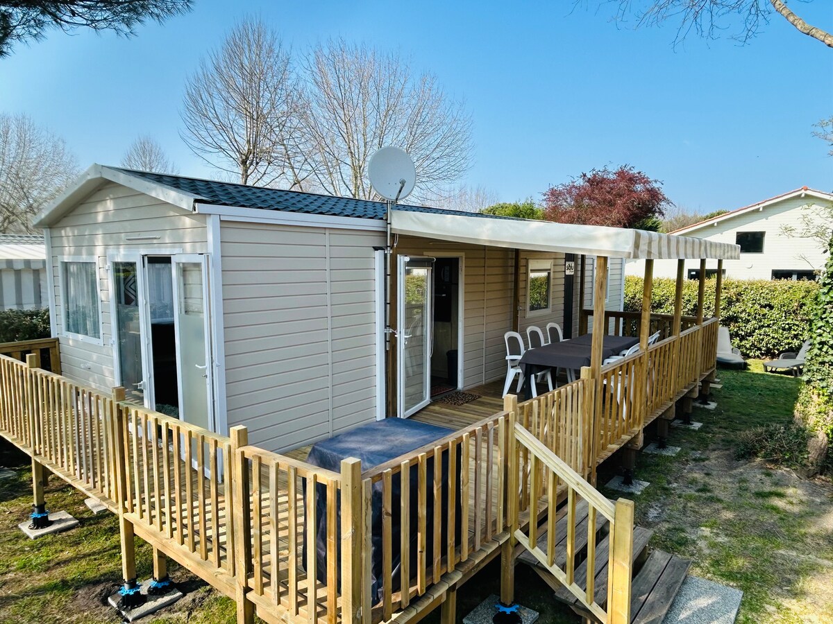 Magandang kahoy na cabin na itinayo na may mga tropikal at kakaibang materyales sa gitna ng Andernos - les - Bains, na matatagpuan sa isang 400 - taong gulang na pribadong hardin na nakatago at napapalibutan ng kapaligiran ng kagubatan. Malapit ang cabin sa Arcachon Bay (5min drive), 30 minutong biyahe mula sa Cap Ferret, 3Omin mula sa Bordeaux Mérignac at 8min na biyahe sa bisikleta lang ang layo mula sa sentro ng lungsod. Malapit sa walang katapusang ruta ng bisikleta.