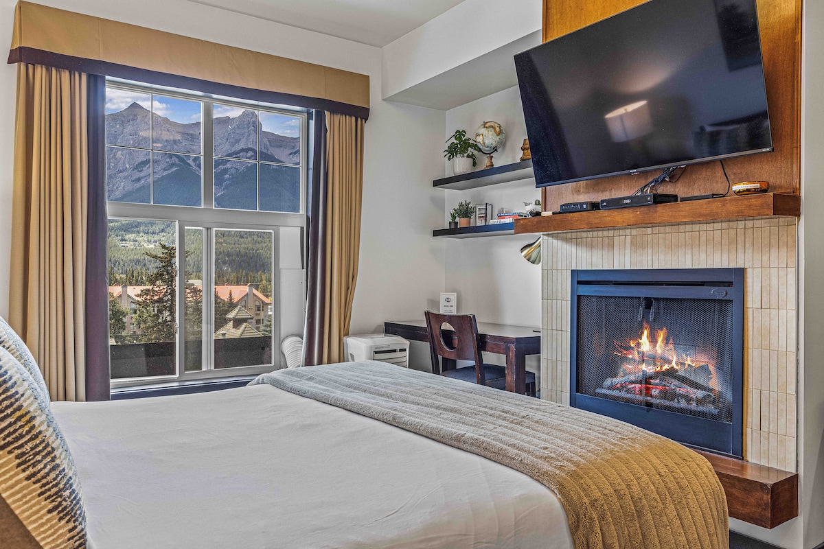 * Nagsara na ang Hot Tub *Walang Kusina o basang bar ngunit may Microwave, refrigerator, Takure, toaster at coffee maker para gumawa ng mabilis na pagkain * Isasara ang mga elevator para sa modernisasyon gaya ng nakaiskedyul sa ibaba: Elevator 1: Abril 28 - Hunyo 6 Elevator 2: Hunyo 9 - Hulyo 18 Elevator 3: Hulyo 21 - Agosto 29 Perpekto ang maliit ngunit maaliwalas na kuwarto sa hotel na ito para sa mga mag - asawa para sa maikling pagbisita sa mga bundok. Matatagpuan ito sa kaakit - akit na bayan sa bundok ng Canmore. Malapit lang ito sa mga restawran, bar, at tindahan