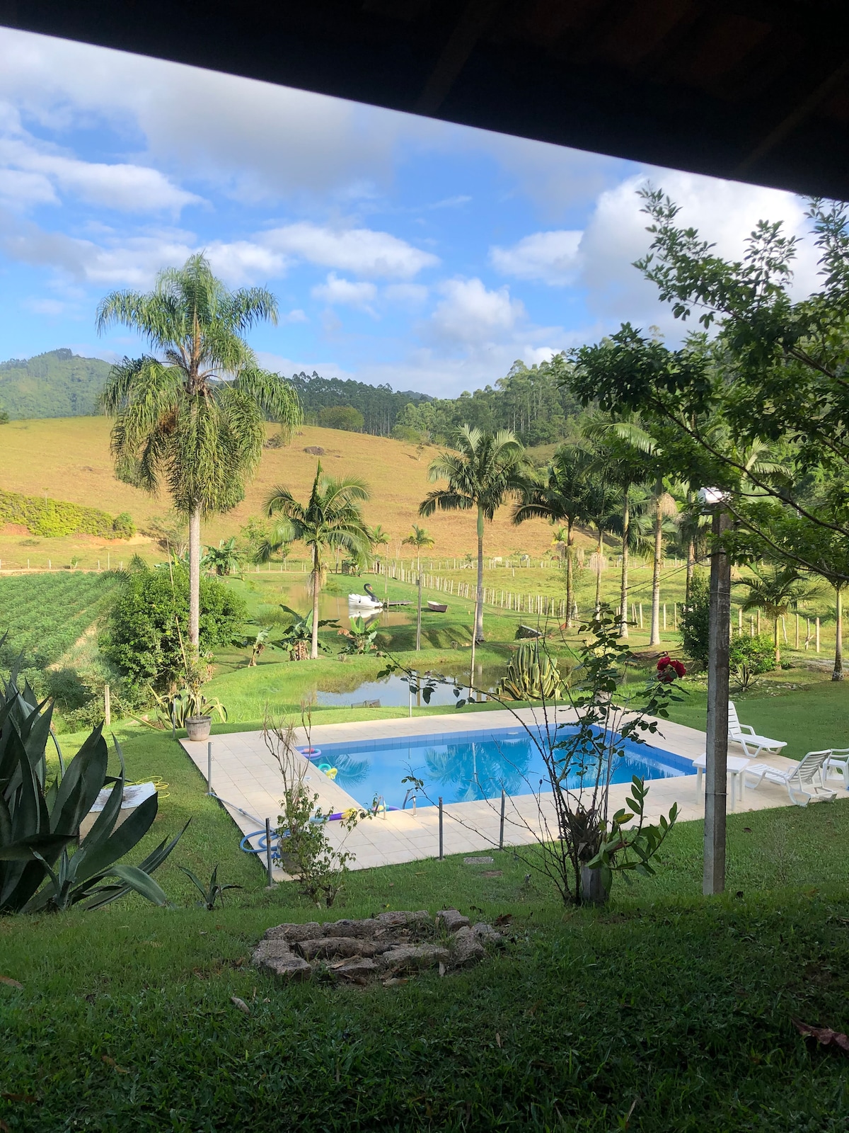 Matatagpuan ang site sa Greater Florianópolis/SC, sa rural na lugar ng Biguaçu, sa Três Riachos. Naka - air condition na bahay na may balkonahe. Double - height na sala at kusina, fireplace, barbecue at wood - burning stove, 4 na silid - tulugan na 1 en - suite. Labahan, sakop na garahe para sa 2 kotse at lugar ng laro na may pool, foosball at hockey. Playground, lighted multi - sport court, swimming pool, 3 horse bays, viewpoint tower para sa landscape, natural na sapa, lawa na may koi at mga puno ng prutas.