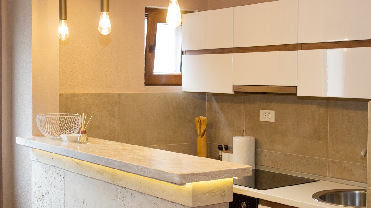 Ang studio sa tabi ng dagat ay perpekto bilang komportableng lugar para sa pagtulog at pagkain ng almusal sa sariling paraan para sa hanggang 3 tao. Ang ginamit na 22 m2 na ito ay perpekto para sa isang mag-asawa na may anak o tatlong batang kaibigan na nais mag-explore sa Montenegro. Kakalabas lang sa merkado noong Hunyo 2022 ang kumpletong studio na ito matapos ang pagsasaayos. Magandang lugar ito para sa sleepover dahil malapit sa maliit na grocery store, ferry, dalawang bus stop, at tatlong pebble beach. Bilang turista, kailangan mong magbayad ng buwis ng turista