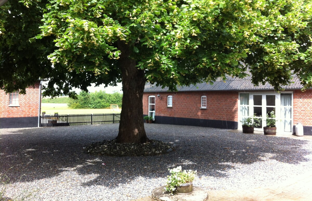 The apartment is 36 square meters and located on the ground floor. Private kitchenette and bathroom. Access to shared kitchen and dining room. Large playground, fire pit and barbecue on the terrace. Beautiful nature right outside the door. We live at a agricultural property approx. 15 km from Billund with LEGOLAND, LEGO House, WOW Park and Lalandia. Very child-friendly place and personal hosting