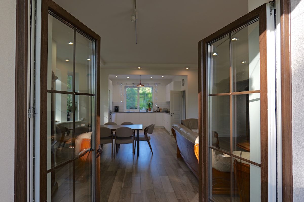 Двоповерховий таунхаус з усіма зручностями, розташований у передмісті Києва за 5 хв від метро Житомирська. Будинок розташований у місці зі зручною транспортною розв'язкою. У будинку є все необхідне для комфортного проживання. Кондиціонер, опалення за системою "тепла підлога". В наявності Wi-Fi, телевізор. На закритій території є місце для барбекю із мангалом. У будинку холодильник, мікрохвильова піч, плита, посуд, пральна машина, фен, і\к сауна. За бажанням чай, кава, сніданок.