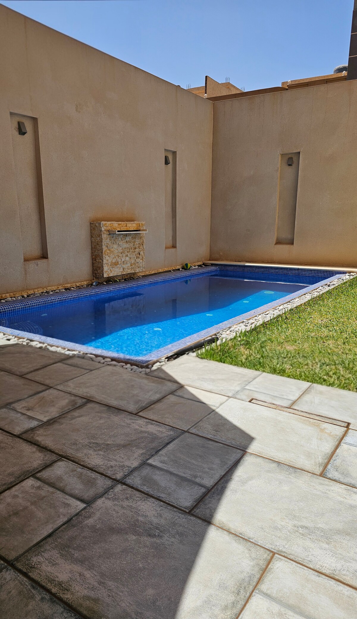 Mamalagi sa isang upscale villa na pinagsasama ang kaginhawaan, kagandahan, at pagpipino: swimming pool 5x4 m (1.50 m ang lalim), tradisyonal na hamam para sa iyong mga nakakarelaks na sandali Tatlong maluluwag na kuwartong may air conditioning na may dressing room Isang malaking air conditioning na sumasaklaw sa buong ground floor. Isang modernong kusina na bukas sa terrace na may malaking 6 na tao na mesa, motorized roller blind at barbecue. Dalawang banyo na may shower sa Italy. Hihilingin sa iyo ang 5000 Dinar ng mga bayarin sa paglilinis sa exit