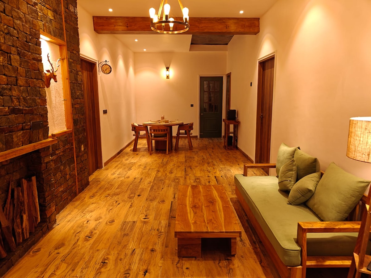 Isang mainit at komportableng living space na nasa pagitan ng mga kagubatan sa bundok at mga bukid, na matatagpuan sa isang kakaibang hamlet na puno ng kapayapaan at katahimikan - ang Nand Maya ang sagot sa iyong pananabik para sa pagpapahinga mula sa buhay ng lungsod! Ang duplex property na tinatanaw ang mga tuktok na natatakpan ng niyebe, medyo pagsikat ng araw at mga ilaw ng lungsod sa gabi ng Almora ay may dalawang silid - tulugan na may mga nakakonektang banyo, isang maliit na sala na cum kitchenette, at mga amenidad para gawing komportable ang anumang pamamalagi.