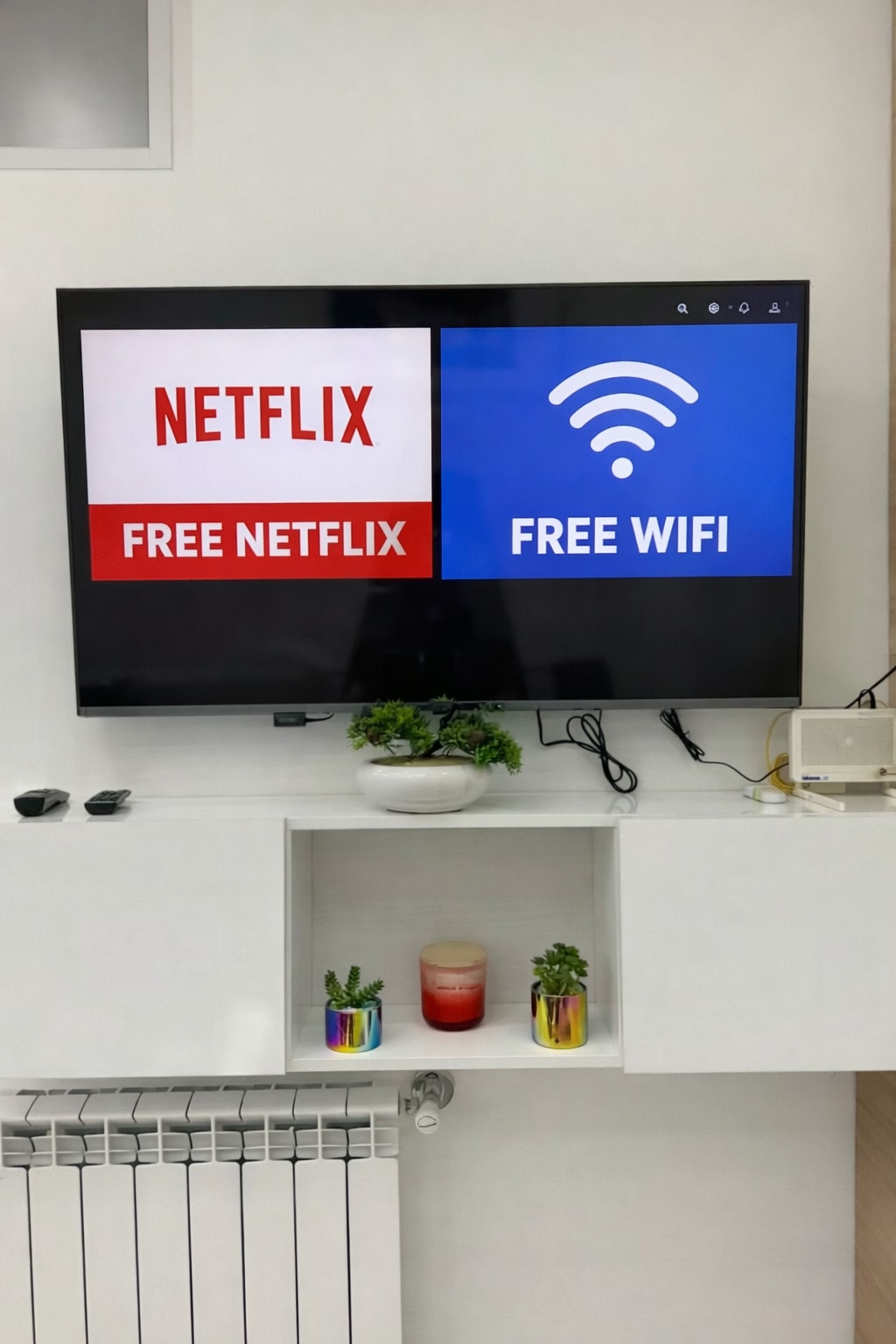 Modernong apartment na may kumpletong kagamitan; sa isang tahimik na lugar, ngunit napakalapit sa abalang kalye ng % {boldiếia. - parquet floor/Central Heating/Smart TV/AC/Libreng Wifi/Dressing/balkonahe para sa pagpapatayo ng mga Damit at washing machine/Iron/Microwave/Electric Kettle/Kitchenware/Mga Tuwalya/Mga Produkto sa Paglilinis - 24/7 na ahente na magagamit para sa iyong tulong sa panahon ng iyong pamamalagi sa Algeria