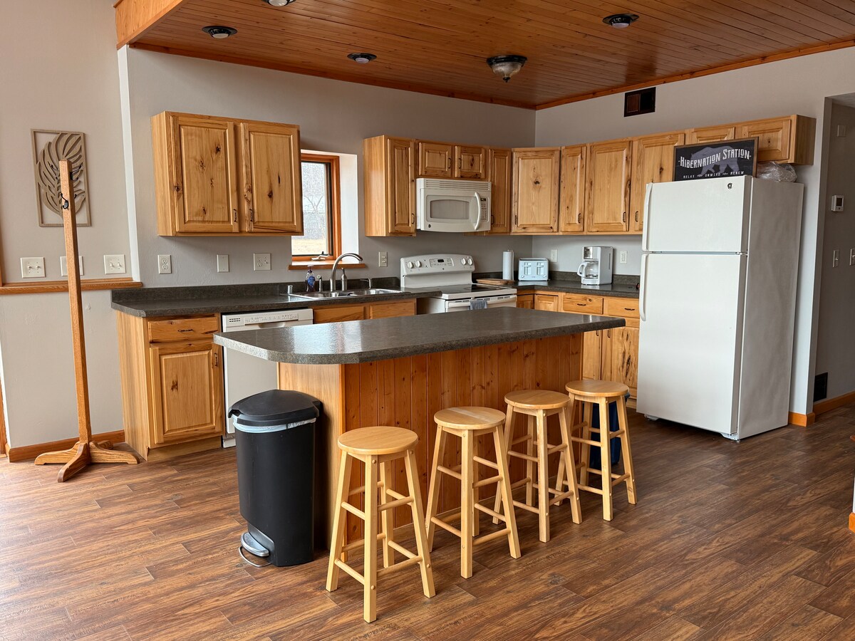 Mag - enjoy sa pamamalagi sa cottage sa malaking kakahuyan! Humahangin nang kalahating milya ang layo ng daanan papunta rito mula sa kalsada. Magiging highlight ang lugar na ito dahil sa lahat mula sa maluwang na bakuran na napapalibutan ng mga kakahuyan, kusina na kumpleto sa mga pinggan, bukas, maaliwalas na sala at mga cute na kuwarto. Ito ay isang pampamilyang lugar kabilang ang Foosball table, mga board game at mga laruan. Mayroon ding picnic table at backyard fire pit (kasama ang panggatong) o maaari mong piliing ihawin ang iyong mga paborito sa covered back porch.