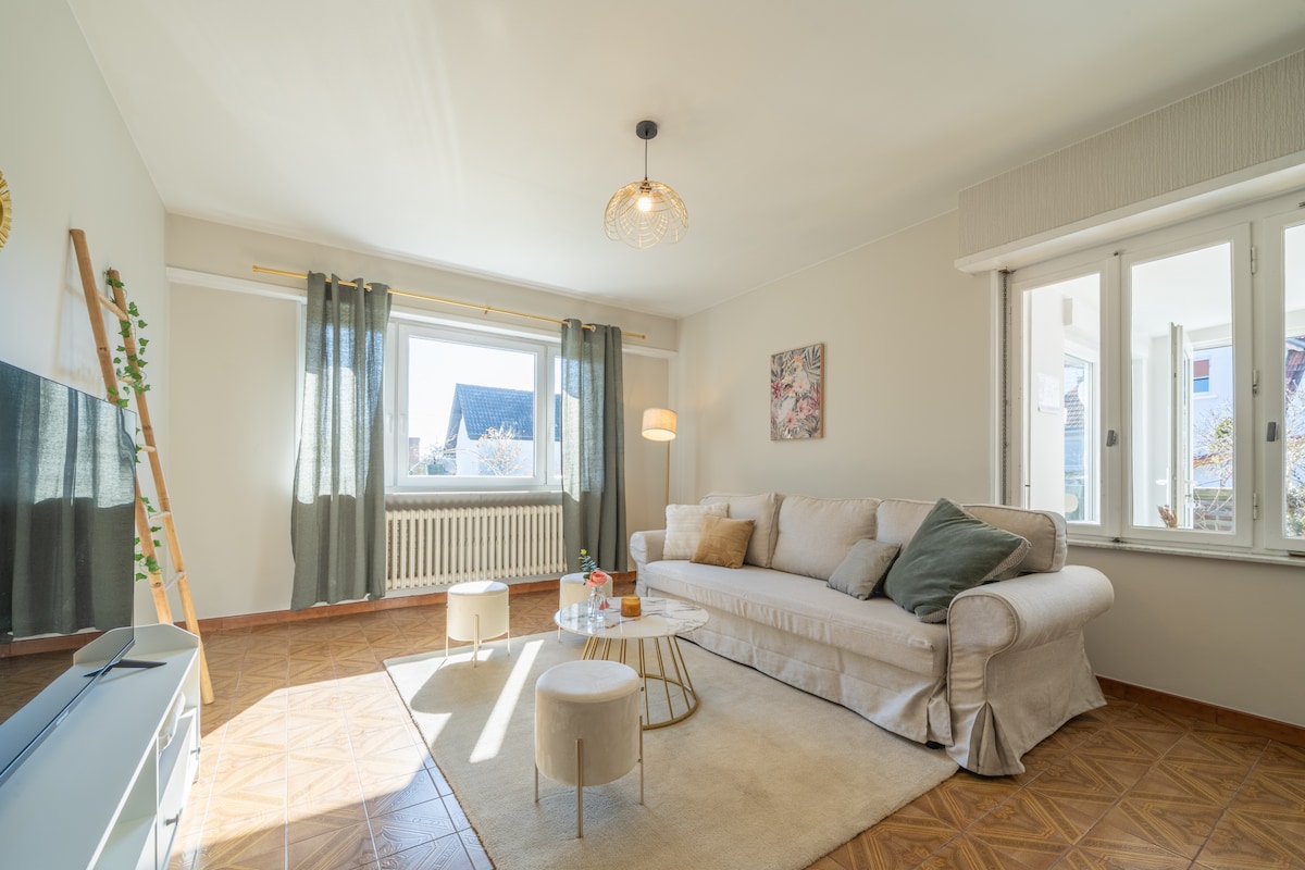Maligayang Pagdating sa Black Forest! Matatagpuan ang magandang architect's house na ito sa isang tahimik na residensyal na lugar na napapalibutan ng mga payapang ubasan at ilan sa pinakamagagandang daanan para sa hiking o pagbibisikleta sa bundok na direktang nasa harap ng pinto. Ang bahay ay may malaking hardin na may kahanga - hangang lumang stock ng mga puno at isang maliit na sapa. Habang inaayos ang bahay na ito, tingnan ang disenyo at ang mga detalye at pati na rin ang ilang teknikal na pagpipino, inaasahan kong tanggapin ka sa maaliwalas na tuluyan na ito.