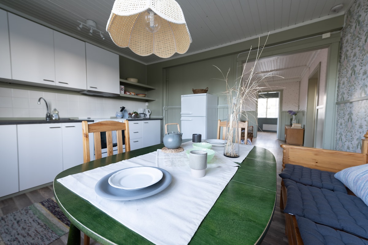 Manirahan at magrelaks sa tahimik na kaluwalhatian ng kalikasan at hindi pa sa labas ng mundo... Ang stuga, na nasa tabi mismo ng ilog, ay nag - aalok ng isang bagay para sa lahat. Ang apartment ay perpekto para sa 2 -4adults o isang pamilya na may dalawang anak. Puwedeng gamitin ang sala nang flexibly bilang kuwarto. Ang mga aktibidad sa panahon ng tag - araw ay nasisiyahan at nakakarelaks sa ilalim ng araw, hiking, pagpili ng berry, pagbibisikleta, pangingisda, paglangoy atbp. Ang kahanga - hangang taglamig ay nag - aanyaya para sa mga paglilibot sa snowshoe, pangingisda ng yelo na tinatangkilik ang kapayapaan at kalikasan!