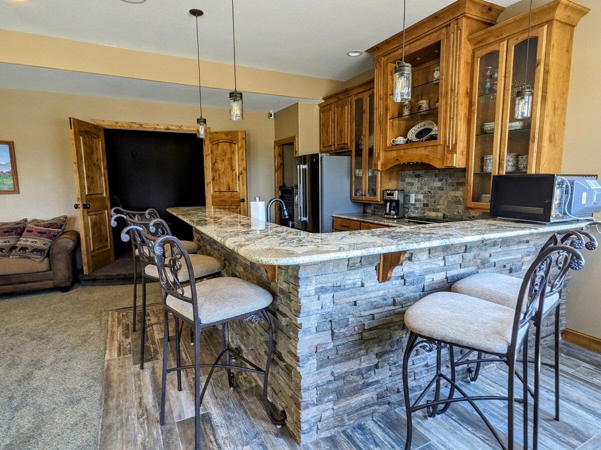 Stay in our Newly Built Family Home ✔ 4,800 sq ft Home, Perfect for Longer Stays & Families ✔ Professionally Cleaned & Sanitized ✔ 6-person Hot Tub, Gas Fire Pit & deck with Mountain Views ✔ King Size Bed 🗲Fast WiFi - Ideal for Working Remotely ✔ Fully Equipped Kitchen Upstairs, Kitchenette Downstairs ✔ In-Suite Washer & Dryer ✔ Theater Room with Complementary Netflix on all TVs ✔ 15 Minutes from USAF Academy We know you'll love your stay. Book today to reserve our beautiful home in the woods!