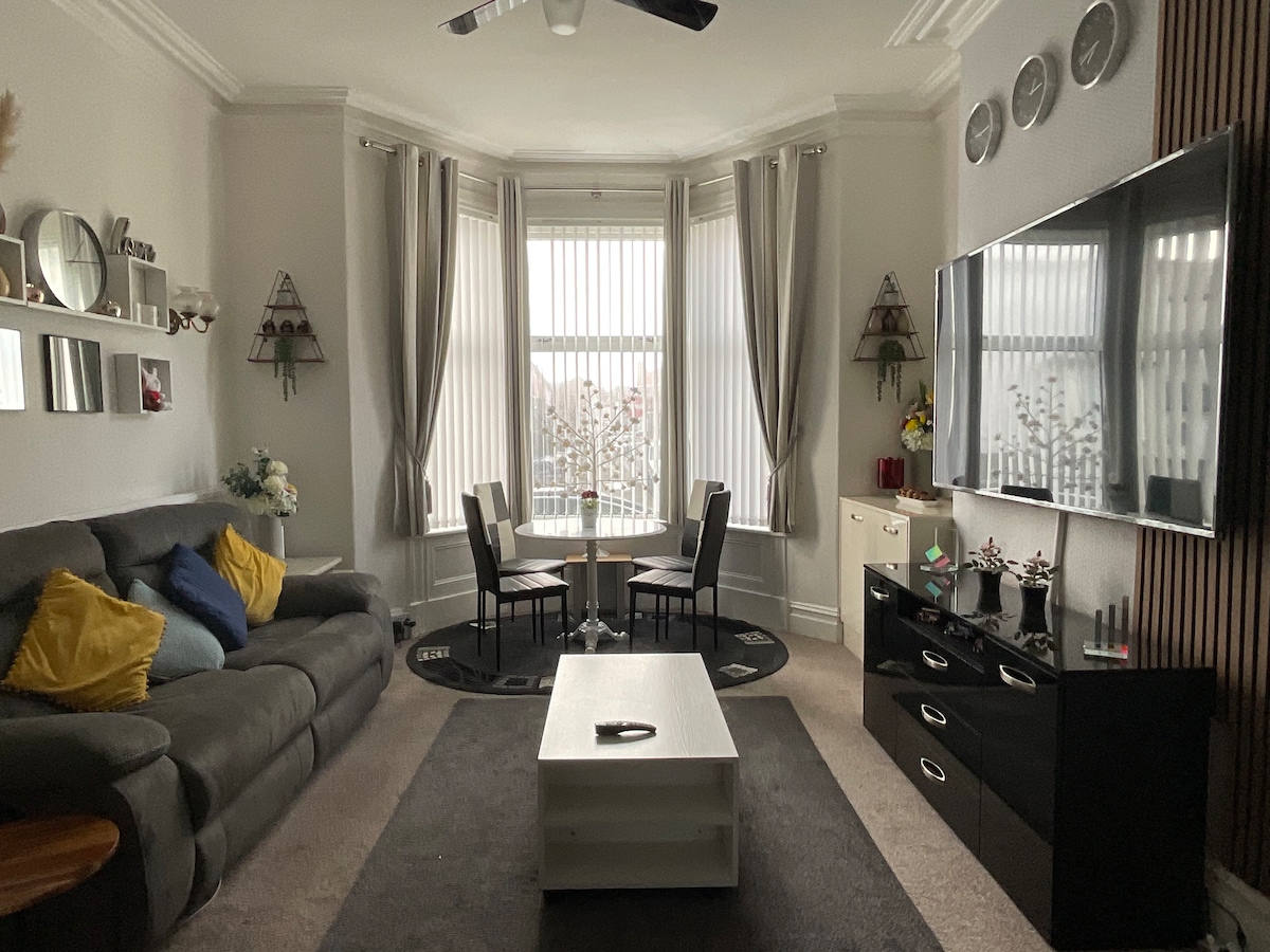 1 Bedroom ground floor apartment. Binubuo ng nakahiwalay na lounge, kusina, silid - tulugan at banyong may shower. Mabilis na koneksyon sa Wifi at Smart TV Ang apartment ay mahusay na inayos na may maraming kuwarto para sa 2 tao. Matatagpuan malapit sa maraming lokal na amenities Inc. Maraming mga tindahan sa loob ng 100meters, ang Blackpool Football Club ay isang 5min lakad ang layo, Promenade 15min lakad ang layo at Stanley Park/Zoo 18 -25min lakad. Pribadong bakuran sa likuran ng property na gagamitin ng mga bisita. Maraming paradahan sa kalsada sa labas mismo ng property.