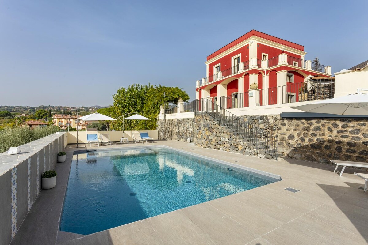Ang Villa Edera ay matatagpuan sa timog - silangan na mga gilid ng Mount Etna malapit sa nayon ng Trecastagni. Dinisenyo ng arkitektong French na si Savin Couelle, ito ay minamahal para sa mga naka - vault na kisame, ang pagkakaisa ng mga arko, ang mga pino na kasangkapan at antigong muwebles. Sosorpresahin ka nito sa mayabong na hardin nito na karaniwang mga puno ng Mediterranean, mga Etnean shalamang - bakod, mga bulaklak at ang malaking swimming pool.