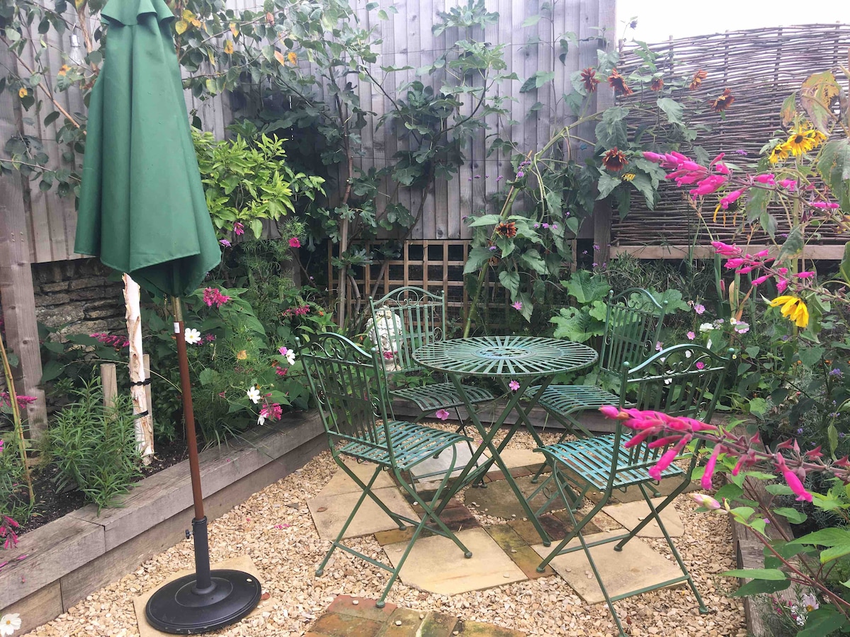 Tamang - tama studio para sa isang solong, isang mag - asawa o isang magulang at bata sa loob ng 5 taon. Maaliwalas, tahimik, na may access sa hardin, 10 minutong lakad papunta sa kamangha - manghang bayan ng Frome! Bed - sitting area, ensuite na banyo at maliit na kusina, hiwalay na pasukan. Isang magandang lakad sa protektadong Rodden Meadows ang magdadala sa iyo sa sentro ng bayan, na puno ng mga independiyenteng tindahan at kilalang lugar ng pagtatanghal na The Cheese and Grain. Available ang paradahan sa aking drive. Basahin ang aking profile kung interesado ka sa nutrisyon/diyeta.