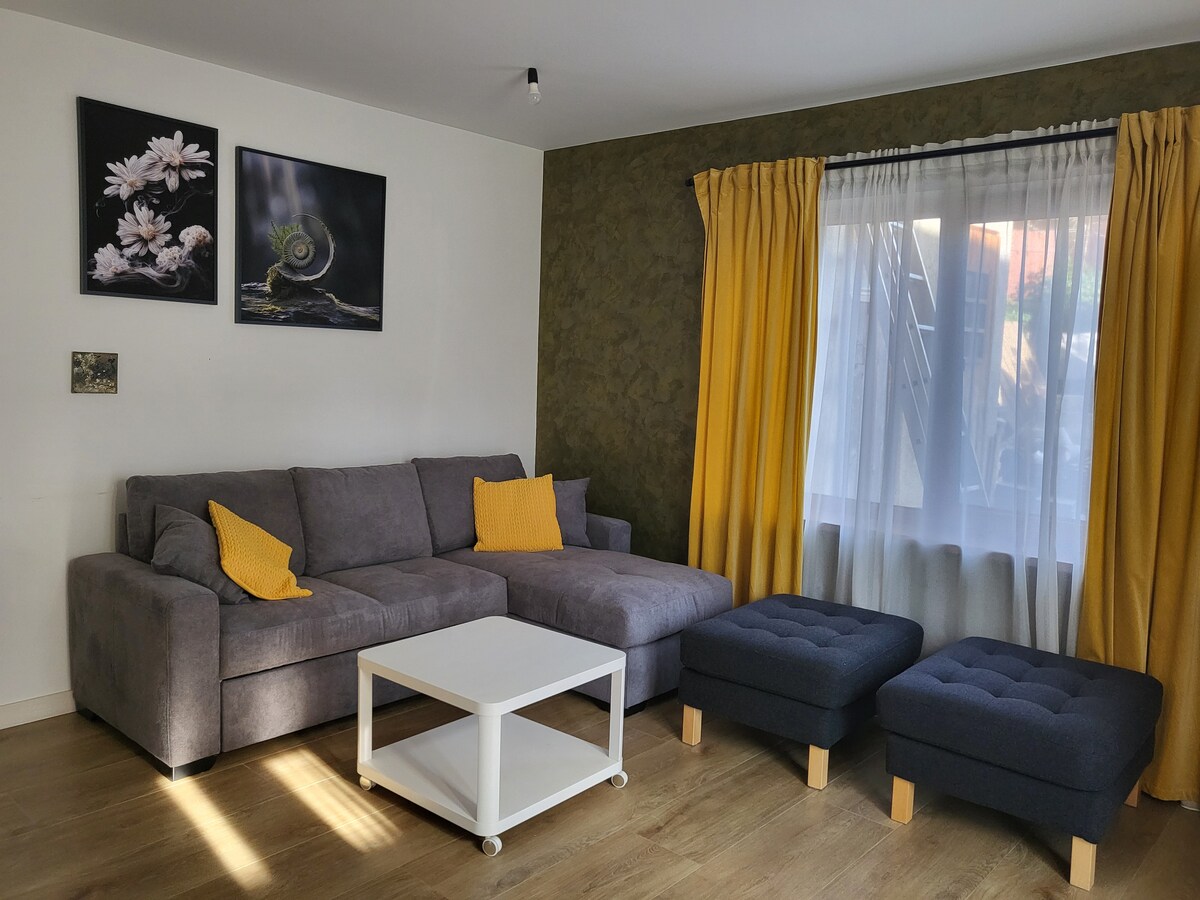 Apartamentul nostru elegant este locul perfect pentru o escapadă urbană de neuitat. Apartamentul are un design modern, cu 1 dormitor confortabil, un living spațios, și o bucătărie complet utilată - ideal pentru oaspeți care preferă să își pregătească mesele acasă. Wi-Fi gratuit, TV smart și aer condiționat sunt doar câteva facilități care vor face șederea ta și mai placută. Pentru un plus de confort, apartamentul include lenjerie de calitate superioară.