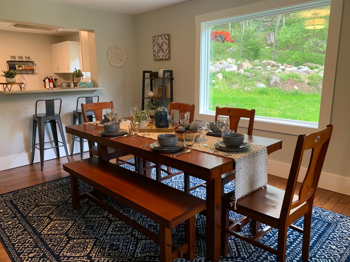 Ang tahimik na lokasyon ay nasa pagitan ng bukid at gameland ng estado. Napakagandang tanawin at paglubog ng araw kung saan matatanaw ang pitong bundok. Mas bagong konstruksyon na may maluwang na kusina, malaking master bedroom na may whirlpool tub, at mga modernong kasangkapan. Katatapos lang ng basement noong 2025. May hiwalay na kuwarto at playroom na ngayon. Malaking palaruan sa labas na maraming duyan at slide. Fire pit/ihawan sa labas na may mga picnic table, payong, at upuang pangdamuhan. May kahoy at lighter fluid.