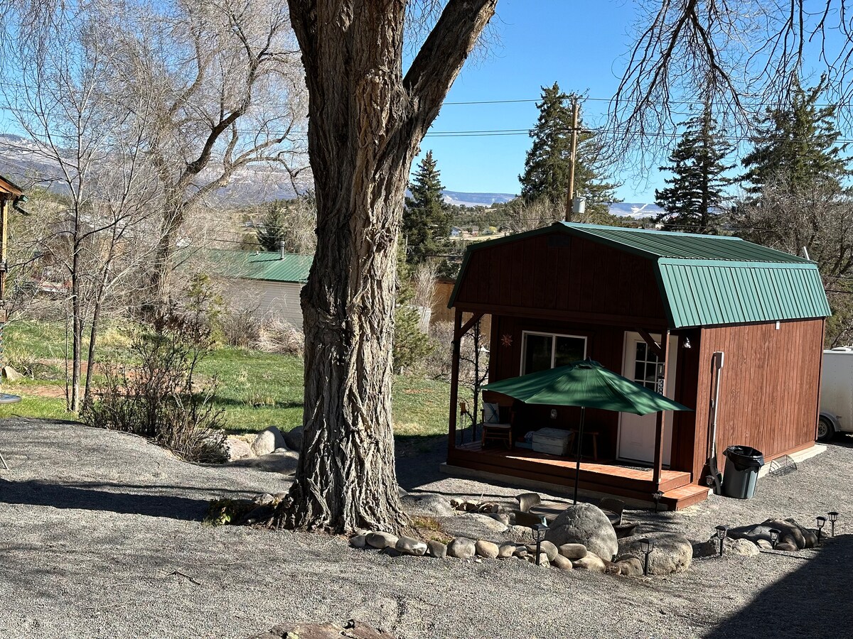 Humigit - kumulang 800 sq ft na cabin. Komportableng natutulog 4, maaaring matulog ng 5 may sapat na gulang; dagdag na higaan para sa mga bata. May ibinigay na Spectrum Internet & TV. Ang kusina ay may buong laki ng refrigerator at kalan, kaldero, kawali at pinggan. Available ang libreng washer at dryer. Ang bukas na living area ay may day bed na may trundle. May queen bed at queen futon ang loft sa itaas. Binakuran ang likod - bahay para sa mga bata at/o (mga) aso na nangangailangan ng pahintulot). Nasa labas ng back gate ang pribadong frontage ng Gunnison River. Maaari kang mangisda o magrelaks at mag - enjoy sa tanawin.