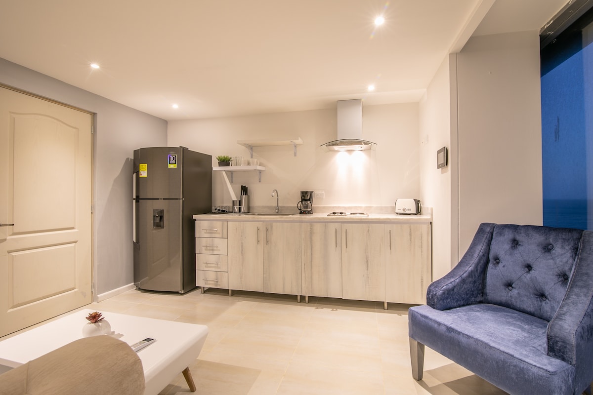 Nag - aalok ang AKA Suites Cartagena ng premium fully furnished apartment na ito sa Bocagrande. Isang magandang tanawin ng dagat na sobrang nakaka - relax. Ang kaginhawaan at kaginhawaan ay nagbabanggaan sa isang sopistikadong modernong estilo. Pumasok sa estilo na may mga granite countertop, porselana tile sahig, karpet sa iyong kama, at isang al fresco balkonahe na magkakaroon ka ng inaabangan ang panahon na pansing isang pagsikat ng araw sa iyong umaga tasa ng kape.