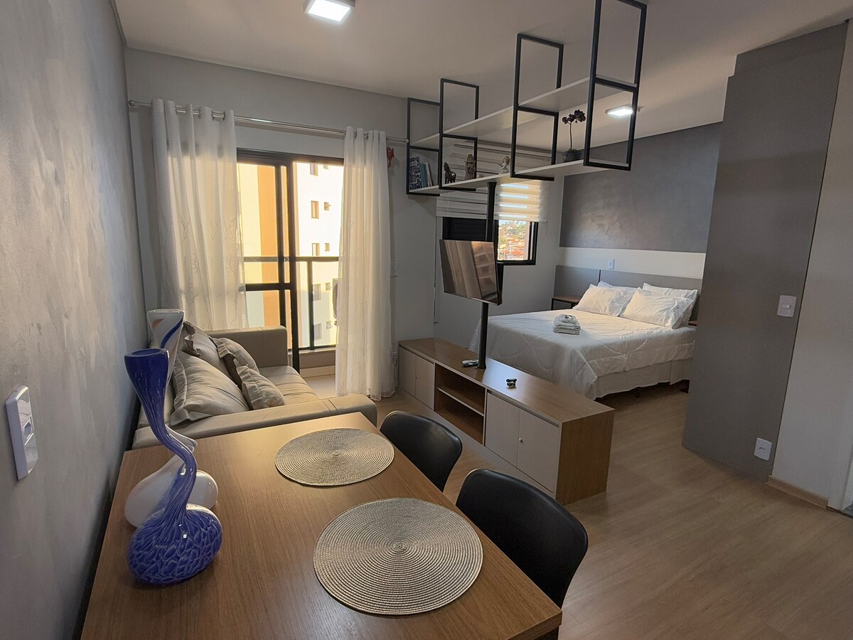✨ Home Studio 607 – Conforto e Praticidade em Jaú ✨ Studio moderno e bem equipado, perfeito para trabalho ou lazer. Possui 1 dormitório, sala , cozinha completa, banheiro e sacada. 🏢 Condomínio com: Piscina, academia, estacionamento e lavanderia. 📍 Localização excelente: Próximo ao Jaú Shopping e Hospital Amaral Carvalho. O apartamento conta com sacada sem grade de proteção em andar elevado. Recomendado apenas para adultos visando a segurança dos hóspedes. 🚫 Não aceitamos animais.