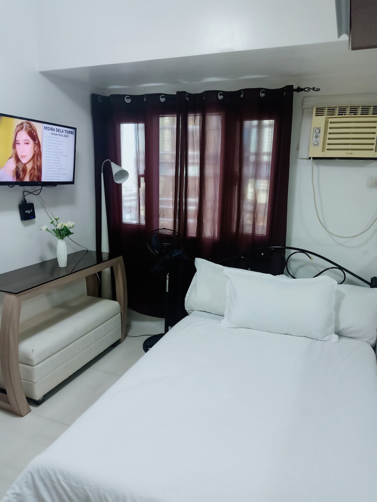 Malawak at kaakit-akit na studio unit -- Masiyahan sa tahimik at pribadong tuluyan na ito na nasa sentro ng lungsod. Napakagandang Lokasyon: 3 minutong lakad mula sa Puregold, McDo, Mang Inasal, at iba pang fast food. Malapit sa makasaysayang Simbahan ng Barasoain, Ace Hospital, BulSu at BMC. Sapat ang laki ng unit para sa 3 tao, at puwedeng bumisita ang mga bisita mo. Ang aming higaan ay hindi lamang foam kundi isang de - kalidad na kutson. TV na puwedeng mag‑Netflix at YouTube. Address: Malolos Heights (aka Alido Hts.), Bulihan, Lungsod ng Malolos.