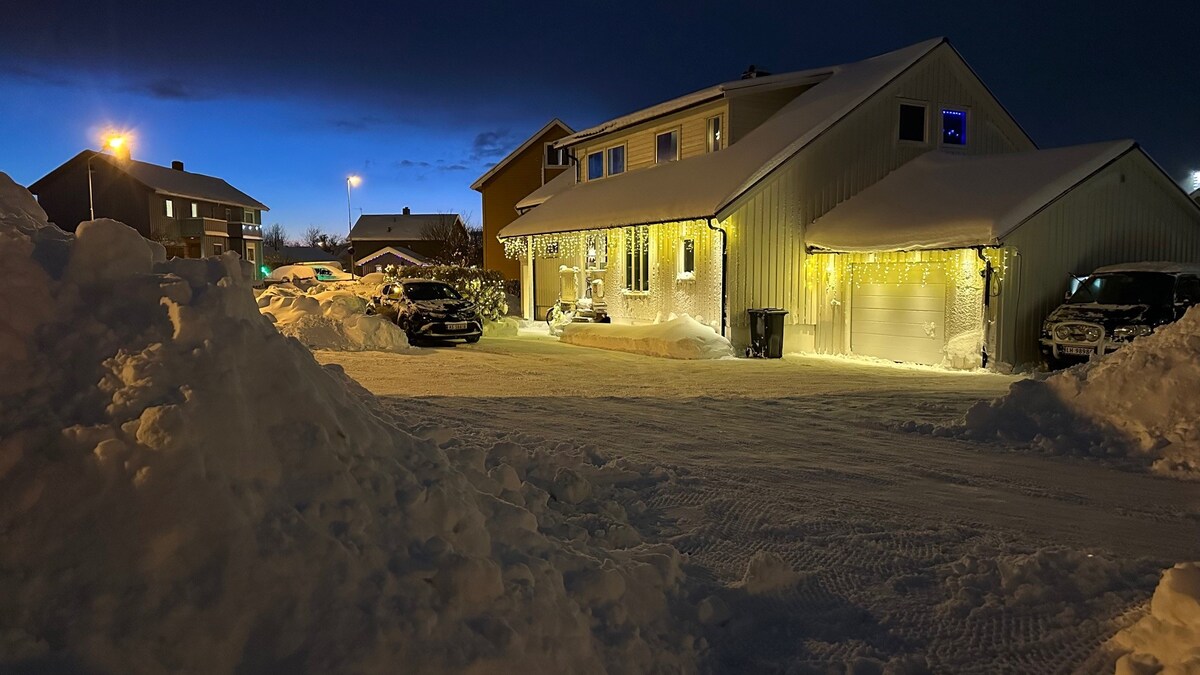 Dalhin ang buong pamilya sa magandang lugar na ito na may maraming lugar para magsaya. 50 minuto lang ang layo ng malaking bahay - bakasyunan mula sa sentro ng lungsod ng Bodø, at 20 minuto ang layo mula sa Saltstraumen. Walang aberya at walang liwanag na polusyon sa bahay. Malaking lugar sa labas, at maikling daan pababa sa mababaw na dagat/swimming area na perpekto para sa paglangoy sa tag - init. Matatagpuan sa gitna ng mtp mountain hikes at pangingisda sa malapit. Narito ang lahat ng kailangan mo para sa isang kasiya - siya at kaaya - ayang pamamalagi.