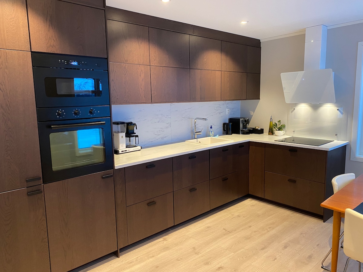 Maligayang pagdating sa aming mapayapang tuluyan sa kanayunan na may balkonahe at magagandang tanawin ng mga bundok ng Lofoten, dagat, hilagang ilaw at hatinggabi ng araw. Sariling apartment sa 2nd floor sa garahe na may balkonahe, banyo, pinagsamang kusina at sala na may double bed para sa dalawang tao, sofa bed para sa dalawang tao at dalawang dagdag na guest bed. Mayroon ding sistema ng home cinema. Maikling biyahe papunta sa Lofoten, moose safari, reindeer farm, panonood ng balyena at iba pang karanasan sa kalikasan.