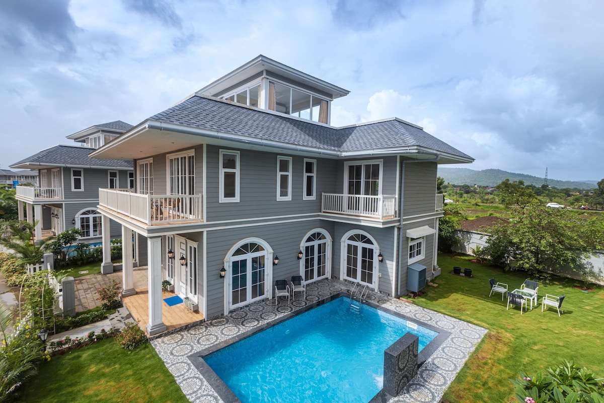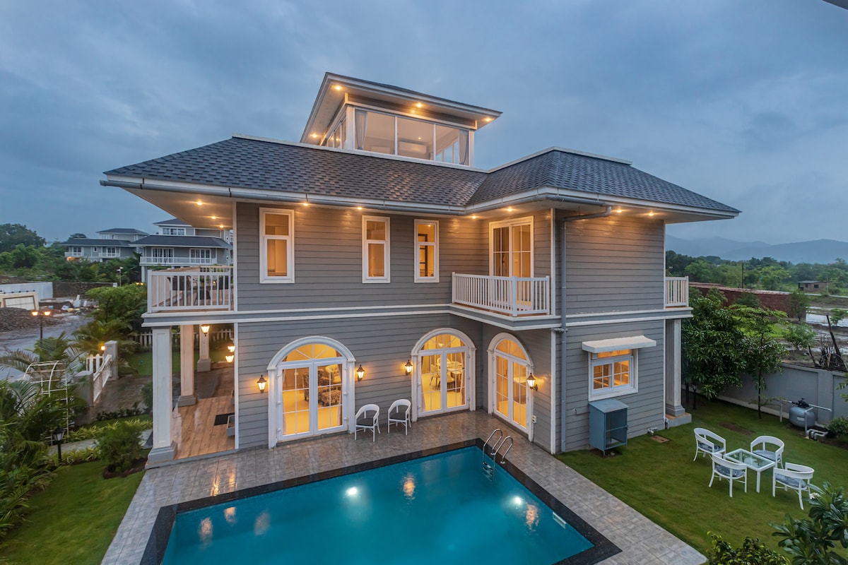 4BHK luxury stay w Pool, WiFi, Food, Lawn, Parking