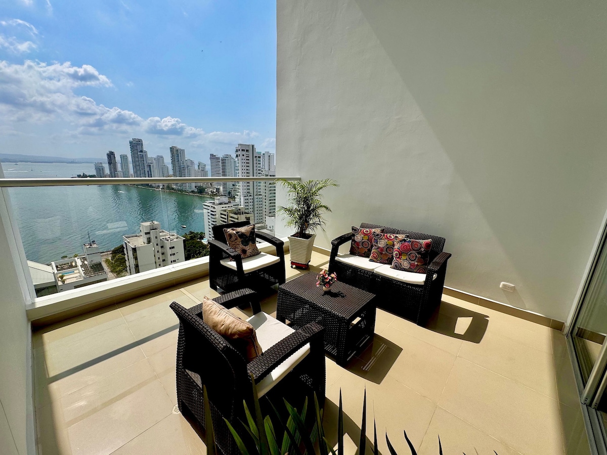 Experience luxury in Cartagena at this exclusive apartment in Bahía Cristal, Zona Kabo. Enjoy modern comfort with spacious rooms, a fully equipped kitchen, and a stylish living area overlooking the bay. Perfect for relaxation or business trips. Minutes from beaches, dining, and shops, it offers privacy and a premium atmosphere. Book now to enjoy comfort, style, and security for an unforgettable stay in Cartagena.
