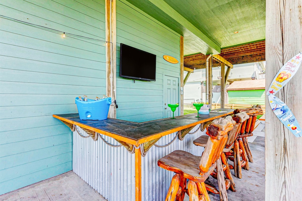 Matatagpuan sa isa sa mga nangungunang beach sa Texas, ang Fore Shore ay mga hakbang mula sa pakiramdam ng buhangin sa pagitan ng iyong mga daliri sa paa, na nagbabad sa mainit na araw sa tabing - dagat, at pagtalsik sa makinang na tubig ng Gulf. Ang kamangha - manghang 3 - bedroom, 2 - bath na tuluyan sa tabing - dagat na ito ay may magandang estilo na may modernong tema sa baybayin, may malawak na bukas na mga lugar na panlipunan, komportableng pribadong silid - tulugan, mga kamangha - manghang lugar na nakakaaliw sa labas kabilang ang mini golf, at direkta sa tubig - lahat ay gumagawa para sa isang hindi malilimutang perpektong bakasyunan.
