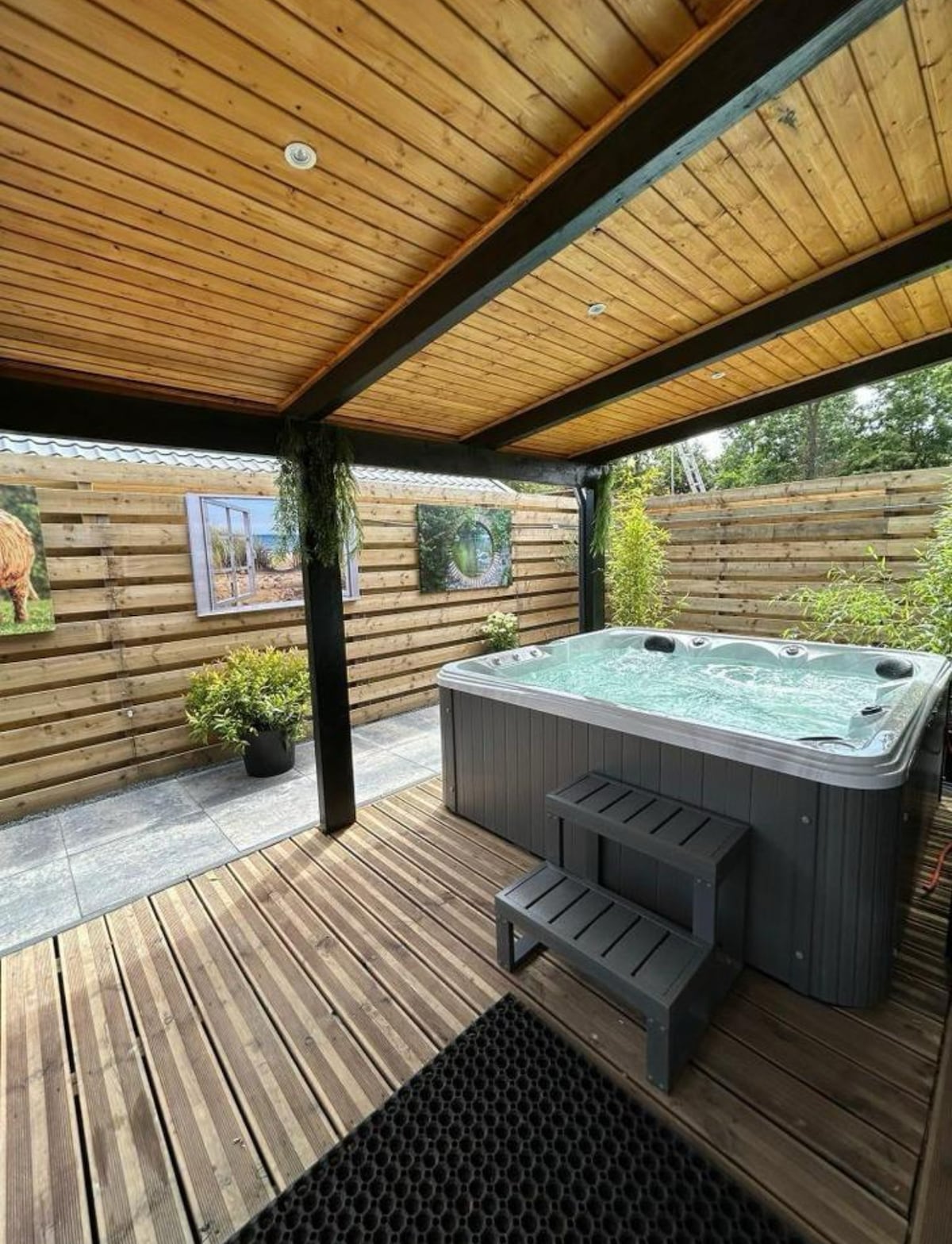 Mag - enjoy sa cottage na may bakod na hardin. Mamalagi ka sa aming magandang cottage sa estilo ng industriya na may garden room at 5 - taong Jacuzzi. Sa hardin, may barrel sauna na may outdoor shower. Handa na ang malalaking tuwalya at bathrobe. Ang guesthouse ay may magandang lugar na nakaupo na may smart TV na may Netflix Mga dagdag na mandatoryong bayarin: Paggamit ng sauna at Jacuzzi: €50 kada gabi Bayarin sa paglilinis: € 65 kada pamamalagi. Magbayad sa pagdating Puwede ang aso mo, may dagdag na bayad na €20 kada gabi