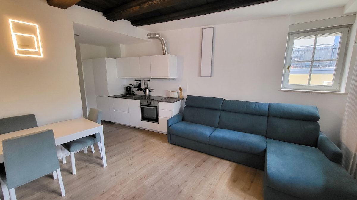 Isang eleganteng at maluwang na kapaligiran na nasa katangian ng makasaysayang sentro ng Bolzano, na nilagyan ng pansin sa detalye, disenyo at pag - andar sa isang bagong itinayong gusali. Maliwanag at komportableng studio na may kusina at queen size na higaan na may terrace, na perpekto para sa nakakarelaks na pamamalagi, isports at kultura sa kabisera ng South Tyrol. May pribadong garahe (may bayad na Euro 20 kada gabi) ang property na may de - kuryenteng pagbubukas sa basement.