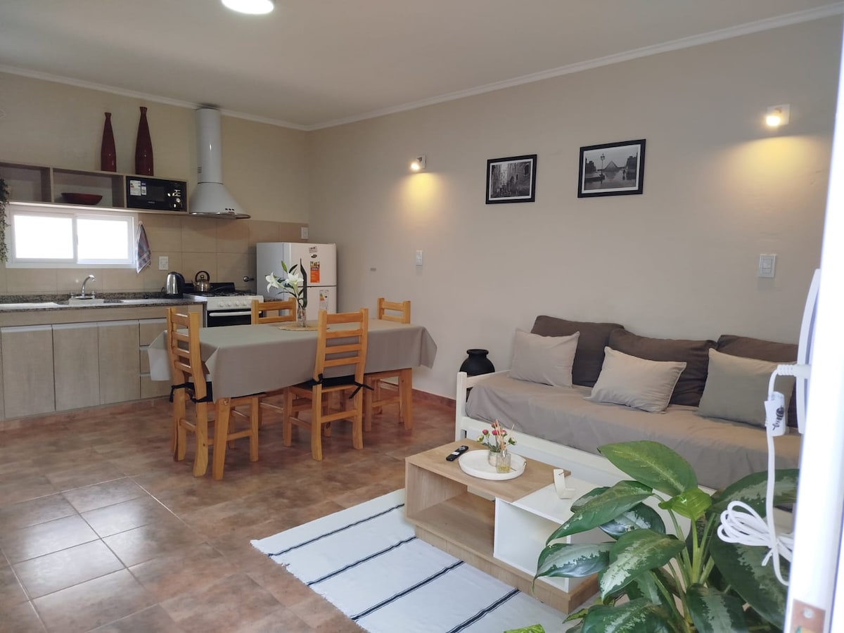 Isang silid - tulugan na apartment na kumpleto at handa nang gamitin (Integrated kitchen/dining room), na matatagpuan sa isang mahusay na kapitbahayan (Candioti Norte, 4 na bloke mula sa Bv Pellegrini). Ang apartment ay may dalawang A/C, isang double bed at isang single bed (sa sala). Matatagpuan ito sa ika -2 palapag at walang elevator. Ito ay nagkakahalaga ng pagpuna sa napakahusay na visual, pag - iilaw at oryentasyon ng apartment. Mayroon itong inuming tubig, gas, kuryente, Internet, cable at malinis na linen. Walang garahe.