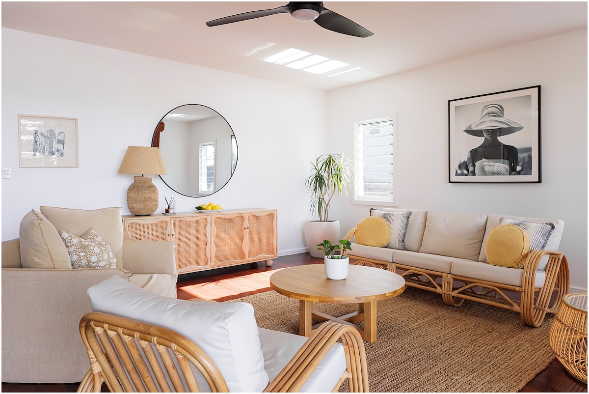 3 banyo at pampamilyang tuluyan. Relaxed open plan living with cafe style windows para makapasok ang simoy ng karagatan. Nagtatampok ang tuluyan ng bagong kusina. Kuwarto para matulog nang hanggang 6 na tao. Maigsing lakad lang papunta sa One Mile beach at Burgess Beach Forster. Malapit na biyahe papunta sa mga tindahan at cafe. Magagandang tanawin sa Karagatan at Cape Hawke. * 1 x queen size na kama * 1 x pandalawahang kama * 2 x pang - isahang kama * fold out lounge.