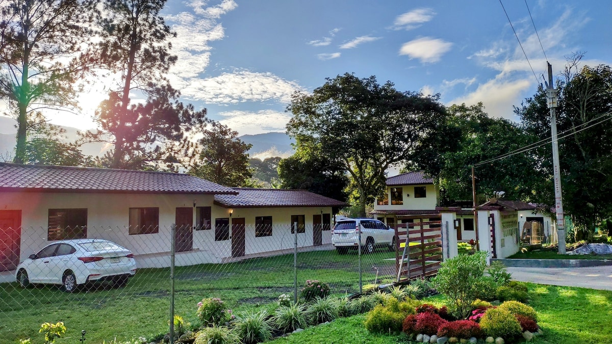 Acogedor y cómodo apartamento, rodeado de naturaleza. Cerca de cafeterías y a corta distancia del centro de Boquete. Si no tienes auto puedes caminar 35 min al centro de Boquete o tomar un autobús a 1 minuto de la casa. Contamos con todo lo necesario para hacer tu estadía cómoda y reconfortante, cómoda cama Queen internet de alta velocidad televisión con cable y cocina completa Disfruta de vista a las montañas, con un clima fresco desde nuestro jardín mientras saboreas un delicioso café local.