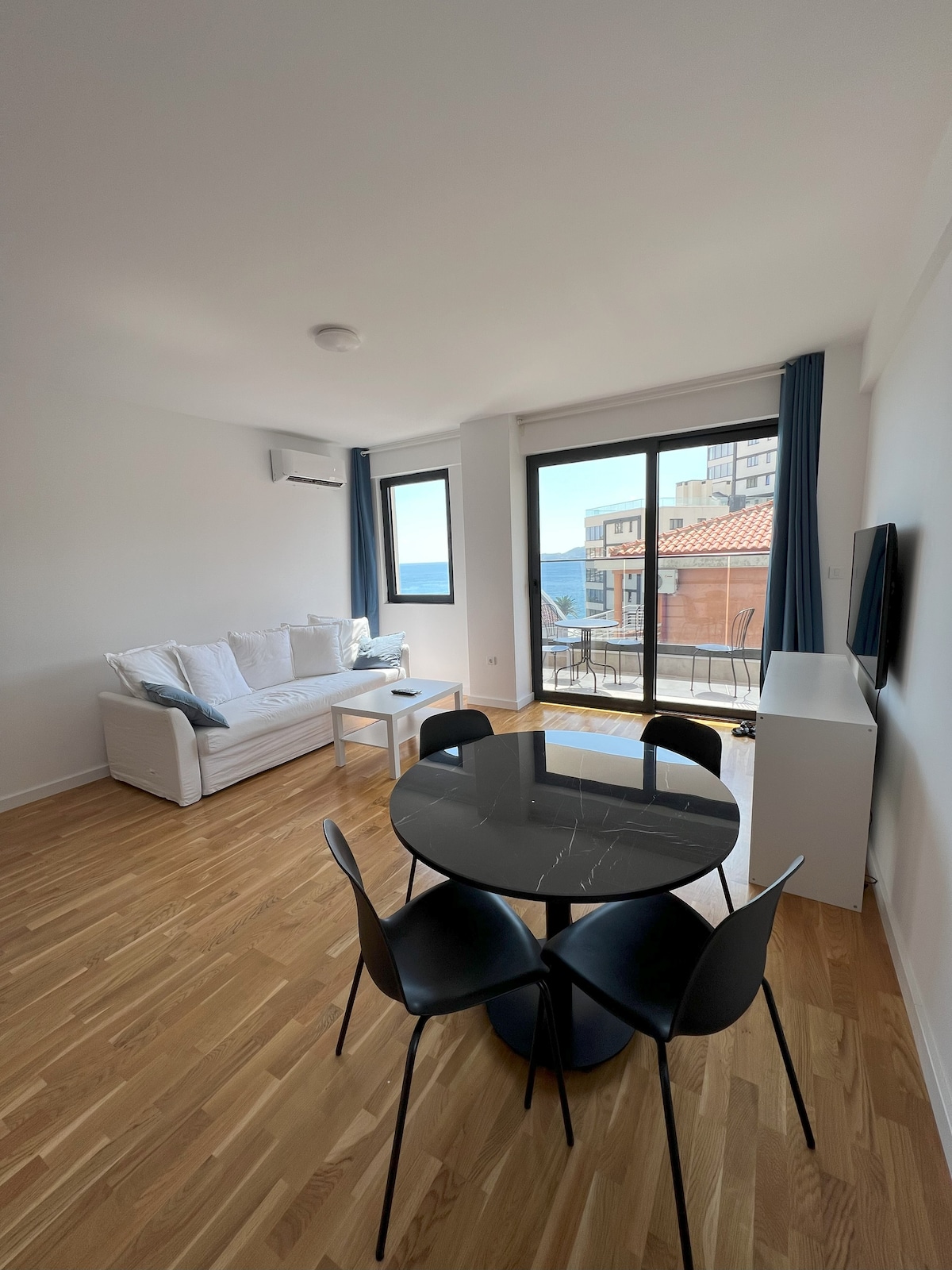 Seaside living in a stylish, brand-new 50 sq. meter apartment, ideally located just a short 50 meter walk from the beach, restaurants, and markets, famous Kamenovo beach is 10 min walk. Apartment is fully furnished, kitchen fully equipped, a cozy bedroom with a queen-size bed, and a comfortable living room with 145x200 cm sofa bed. Modern amenities, including new appliances, a washer, internet, and TV. Free parking in covered garage with quick access to elevator is available.