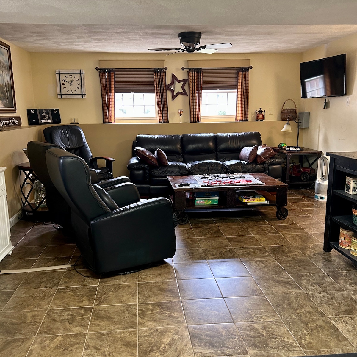 MALAKING apartment sa ground floor na may sarili mong pasukan. Ang Master Bedroom ay may: . Kalahating paliguan . Queen size na higaan. . Kumpletong sukat ng sofa bed . TV/Netflix . Cozy gas burning heating stove . Desk/upuan . Water cooler . Kape/Tsaa Kasama sa kusina ang . Lababo . Malaking Refrigerator . Microwave . Mga induction stove top . Toaster Oven Sala . Queen Sofa Bed . 2 Recliner . 50" TV Labahan Buong Banyo Shopping plaza 2 milya pababa ng kalsada at 5 minuto lamang sa I - 95 o Rt. 1 at 20 minuto lamang sa Boston o Salem.