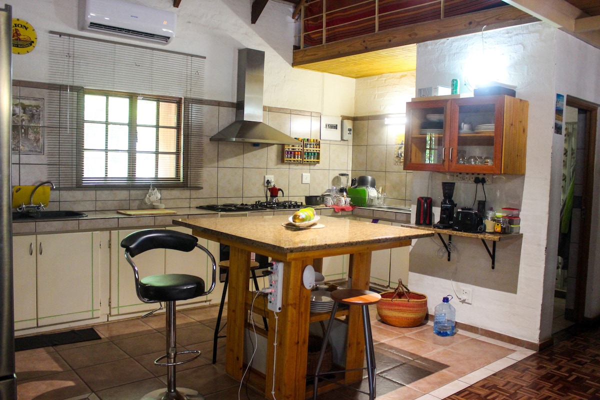 Mag - enjoy ng pambihirang pamamalagi sa isang makasaysayang farmhouse sa tahimik at magandang bukid ng baka. Puwede kang mag - self cater o puwede kaming magbigay ng hapunan. Mainam ang farmhouse para sa mga panandaliang pamamalagi at pangmatagalang pamamalagi na nag - aalok ng magandang swimming pool, mabilis na WiFi, mga lugar ng trabaho, walang katapusang lugar para sa iyong sarili at malapit na lawa, na nakakaakit ng iba 't ibang ibon at wildlife. Matatagpuan 1km mula sa A3, sa pagitan ng Ghanzi (Gantsi) at D 'kar. Naka - air condition ang parehong silid - tulugan at may mga queen size na higaan at en - suite na banyo.