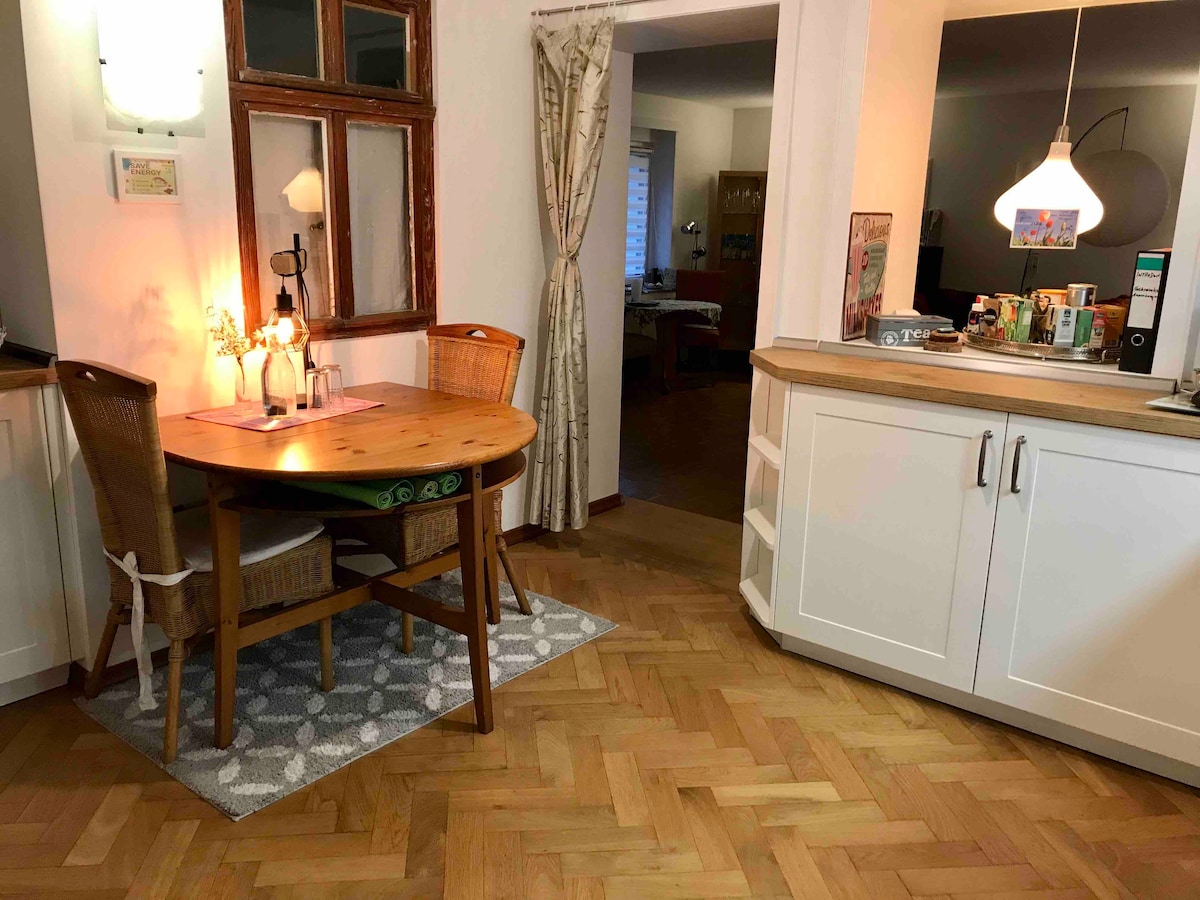 Maganda ang pagkakaayos at isa - isang inayos, tahimik na guest suite na may pribadong pasukan sa 2 palapag na may 40sqm. Pinakamahusay na lokasyon, 10 minutong lakad mula sa parke ng lungsod at sa lumang bayan, maraming mga ekskursiyon sa malapit. Ang pribadong terrace na may access mula sa naka - istilong sala, ang tanawin ng magandang hardin, ang hiwalay na kusina, palikuran ng bisita at banyo sa itaas at lalo na ang lugar ng pagtulog kung saan matatanaw ang mga nakapaligid na hardin ay nag - aanyaya sa iyo sa isang nakakarelaks na pamamalagi.