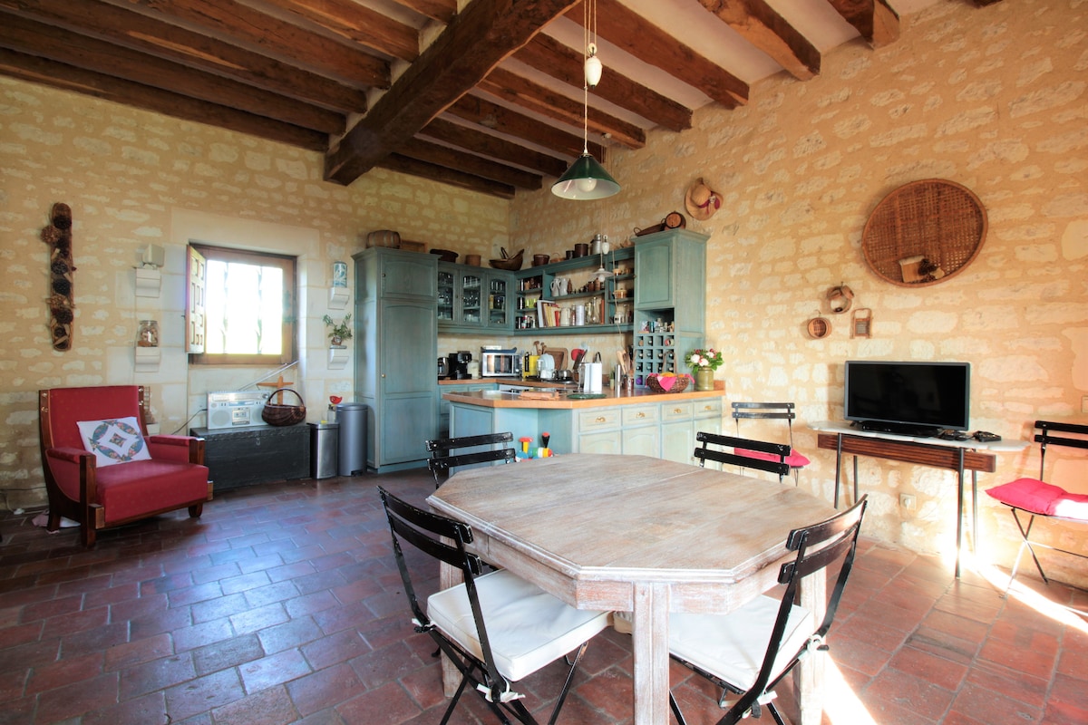 Ang turreted hideaway na ito ay bumubuo sa East Tower ng isang 15th century château - na itinampok sa ilang mga tahanan at interior magazine sa UK. Ang tore ay ganap na self - contained at ang maganda, covered balcony nito ay nag - aalok ng mga nakamamanghang tanawin sa ibabaw ng truffle orchard ng château. Sa loob, puno ito ng karakter na may pabilog at may beam na kuwarto at roll top bath sa itaas na palapag at silid - upuan sa ibaba. Walang pormal na kusina kaya ito ay isang lugar para sa mga foodie na gustong maranasan ang lokal na pagkaing French sa pamamagitan ng pagkain sa labas