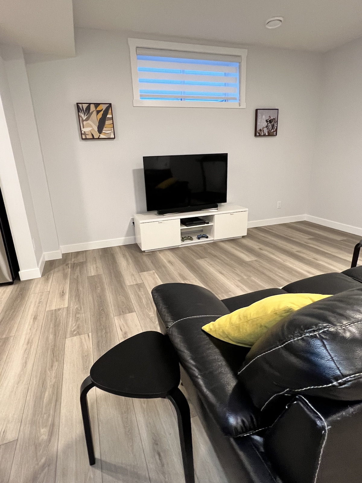 Isang bagong kamangha - manghang ganap na maglakad palabas ng 1 silid - tulugan. Ganap na may kumpletong kagamitan at hindi kapani - paniwalang bukas at maliwanag na may malaking lugar na nakaupo, magandang tanawin ng likod - bahay, hiwalay na pasukan at malapit sa mga bus stop at shopping center. 20 minutong biyahe papunta sa Calgary airport at 25 minutong biyahe papunta sa downtown. Isang malaking double glass entrance door na may maluwang na sala. May wifi access para masiyahan sa Netflix. Nilagyan ng mga bagong kasangkapan na may hiwalay na washer at dryer. Buong banyo na may bagong tub