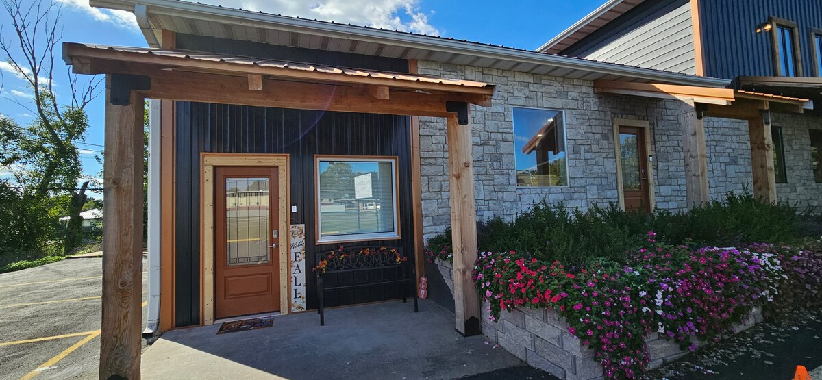 Welcome to Red Country Retreat, a peaceful escape tucked into the corner of our shop, right at the edge of the woods! Wakeup to cows grazing in the pasture, chickens happily cackling in the distance and the kind of quiet you can only find in the country. Inside, enjoy warm cabin vibes with rustic charm and a cozy electric fireplace-the perfect place to slow down and unwind! Whether your looking for a weekend reset or a country getaway, Red Country Retreat offers simple living at its finest!
