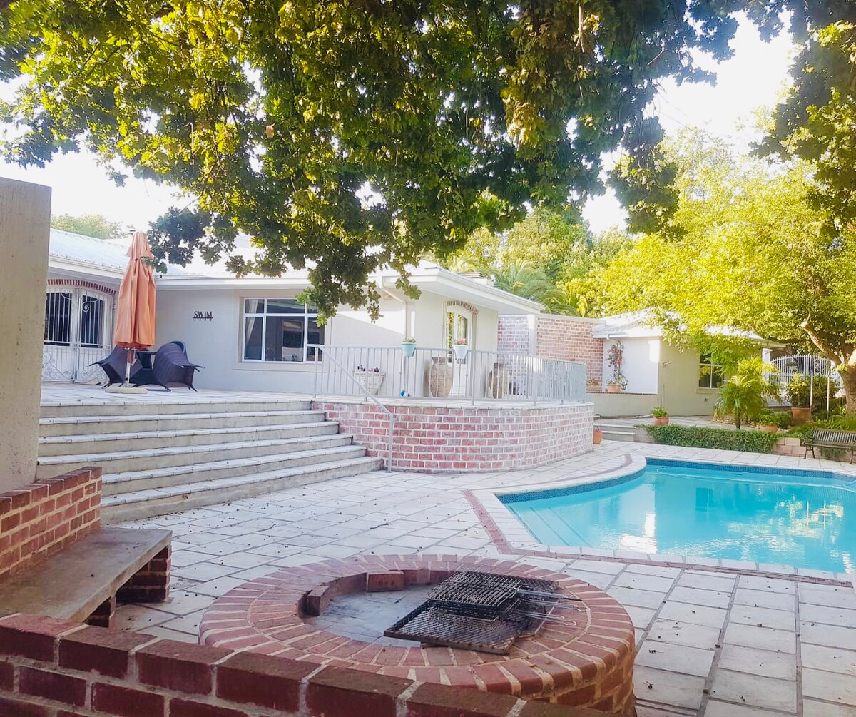 Magandang modernong tuluyan, sa malabay na hilagang suburb ng Ridgeworth, sa Cape Town. Malapit ang libreng nakatayong bahay na ito sa mga pangunahing highway; na may madaling access sa Cape Town at sa mga marilag na ruta ng alak sa Cape (Stellenbosch, Durbanville at Paarl). Kabilang sa mga tampok ang: solar at inverter system para sa loadshedding, high speed uncapped Wi - Fi, washing machine, malaking open - plan na living space at indoor barbeque. Isang covered patio ang papunta sa swimming pool (na may solidong takip) at hardin ng tanawin.