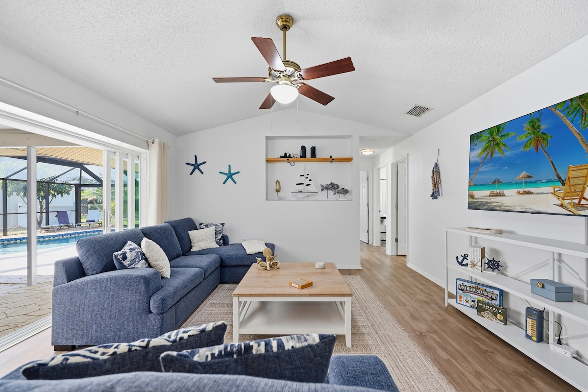 🌴Maligayang pagdating sa Beachway Haven! Ilang minuto lang ang layo ng 5 - Star ⭐️ hideaway na ito mula sa Pristine Beaches ng Anna Maria Island at sa Gulf of Mexico. Magrelaks gamit ang sarili mong Heated Saltwater Pool & Spa Hot Tub, na matatagpuan sa tropikal na oasis. Laktawan lang ang layo mula sa mga Golf Course, Nature Parks, img Academy, at Palma Sola Causeway 's Beach Access – ang iyong gateway papunta sa Horseback Riding, Kayaking, at walang katapusang sandy adventures. Ilang minuto lang ang layo ng shopping at kainan!