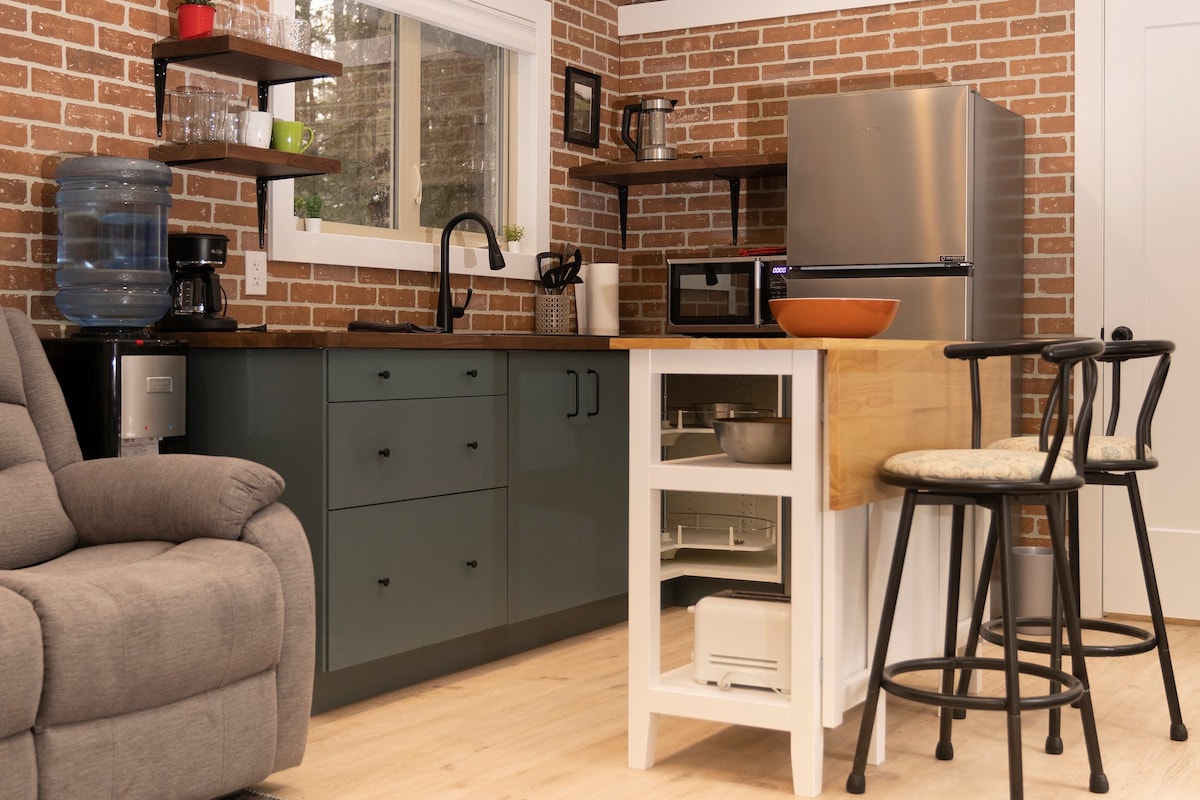 Modernong pribadong open‑plan na studio/loft na may wood stove sa lupang puno ng mga puno at hayop. Matatagpuan sa pagitan ng maganda at rustikong hamlet ng Bragg Creek, nakamamanghang mountain playground ng Kananaskis, at mga kilalang West Bragg Creek Trail. 10 minutong biyahe sa walang katapusang hiking, pagbibisikleta, snowshoe, xc-skiing, at horse trail. May outdoor firepit, deck na nasa lupa, queen bed at chair bed para sa ika‑3 bisita, wifi, Netflix, Prime, malaking shower, iniangkop na kusina, at magagandang tanawin ng kagubatan ang unit.